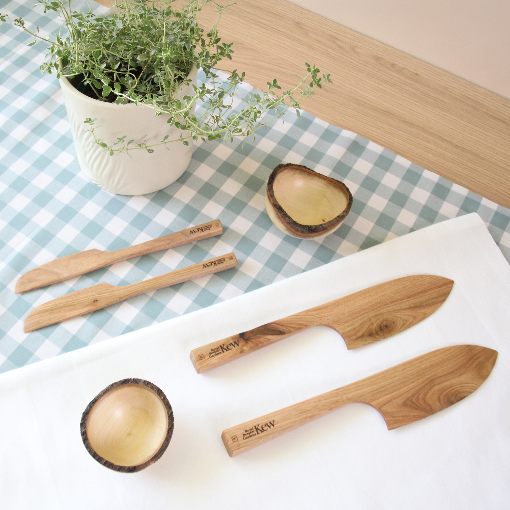 The Grown at Kew collection is a range of handcrafted homewares created using waste timber from felled trees in Kew’s world-famous arboretum. Each unique piece carries the legacy of Kew’s historic landscape, offering a rare opportunity to own a piece of botanical history. From butter knives to bowls, each individual item has been expertly crafted using traditional woodworking methods and carries a hallmark traceable back to the original tree and even the seed from which it grew.
