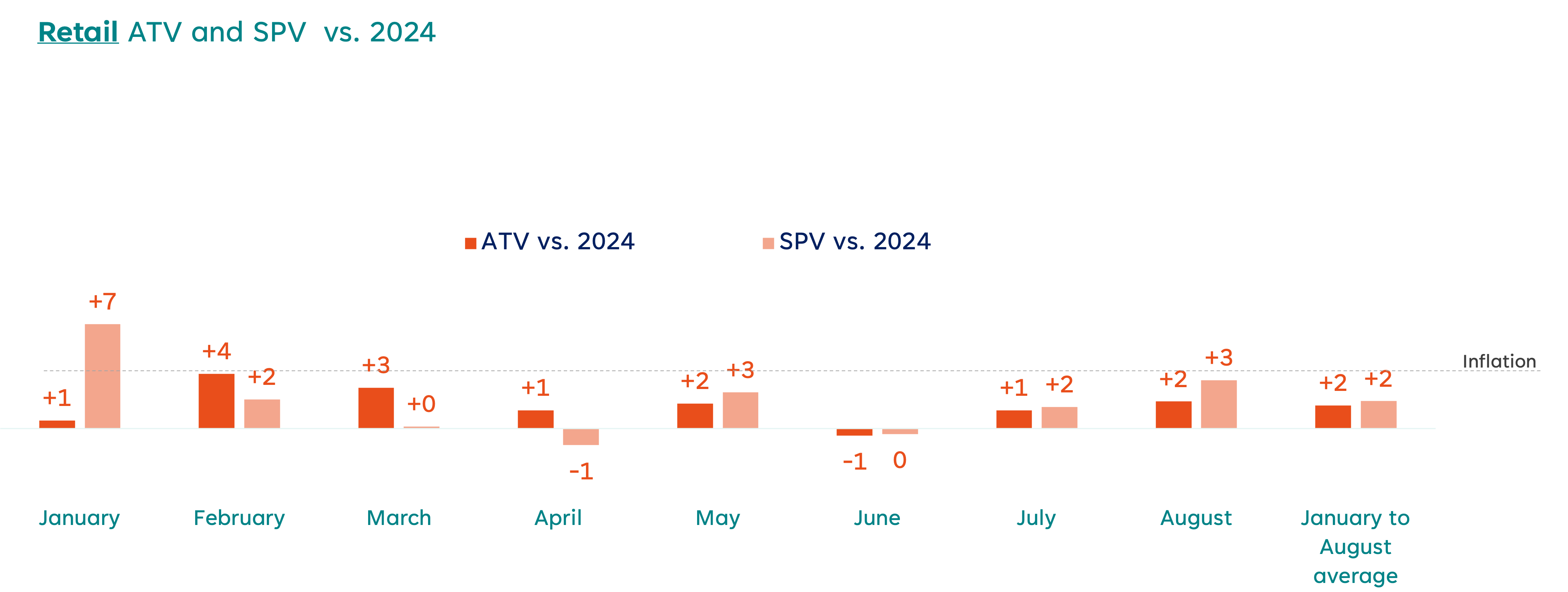 We may also be seeing signs of cutbacks in retail spend, with both ATV and SPV tracking below inflation for almost every month this year. With catering faring slightly better, this may be another sign of the public reducing ‘non-essential’ spending without sacrificing their experiences altogether.