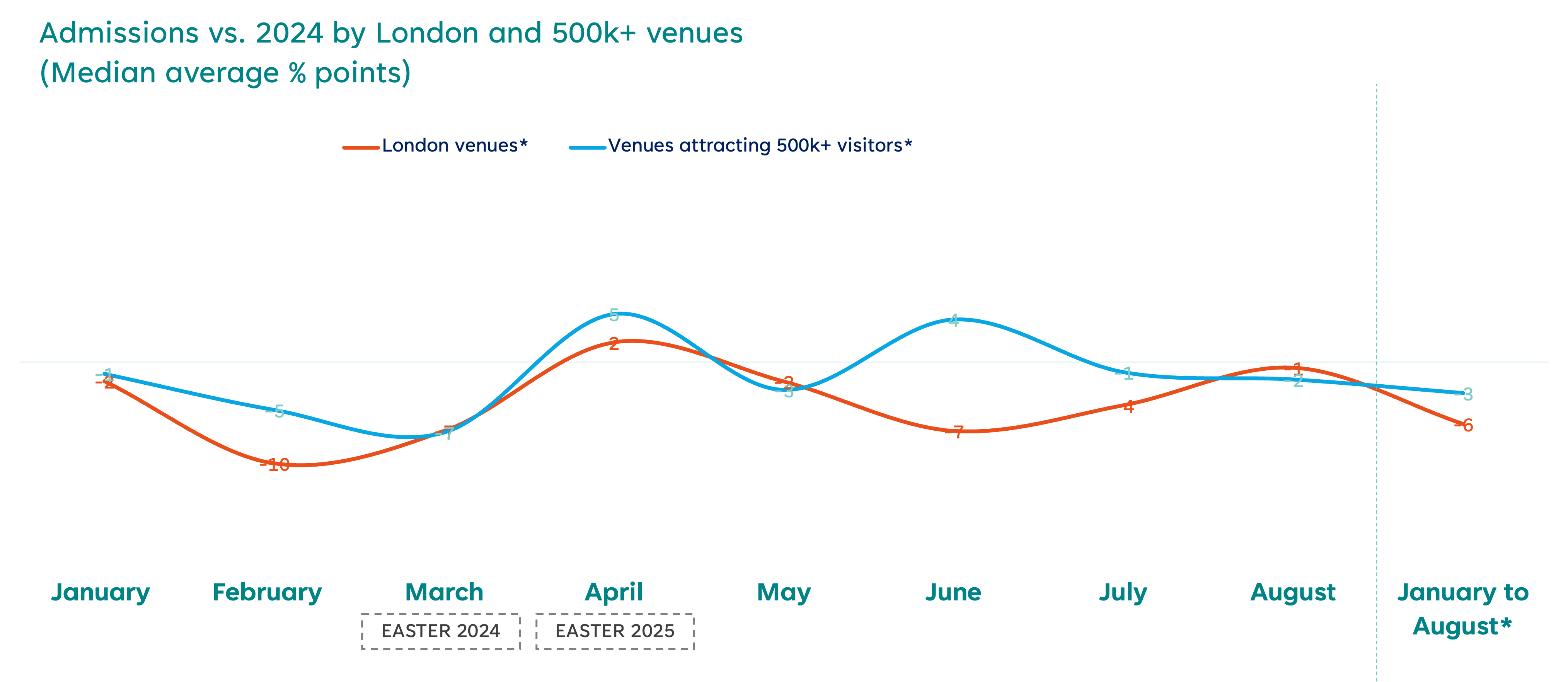In these challenging times, it is encouraging that year-to-date admissions are only 1% down on 2024, with 39% of venues reporting an increase in visits. This highlights the sector’s resilience at a time when cost-of-living fears and savings ratios (a sign of spending caution) are higher than a year earlier.